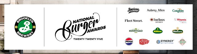 The National Burger Awards 2025 is headline sponsored by Brooklyn Brewery, and sponsored by Americana, Aubrey Allen, Conglom, Fleet Street, Four Roses Bourbon, Kerrymaid, Kühne, Oliehoorn, Redefine Meat and Tabasco.