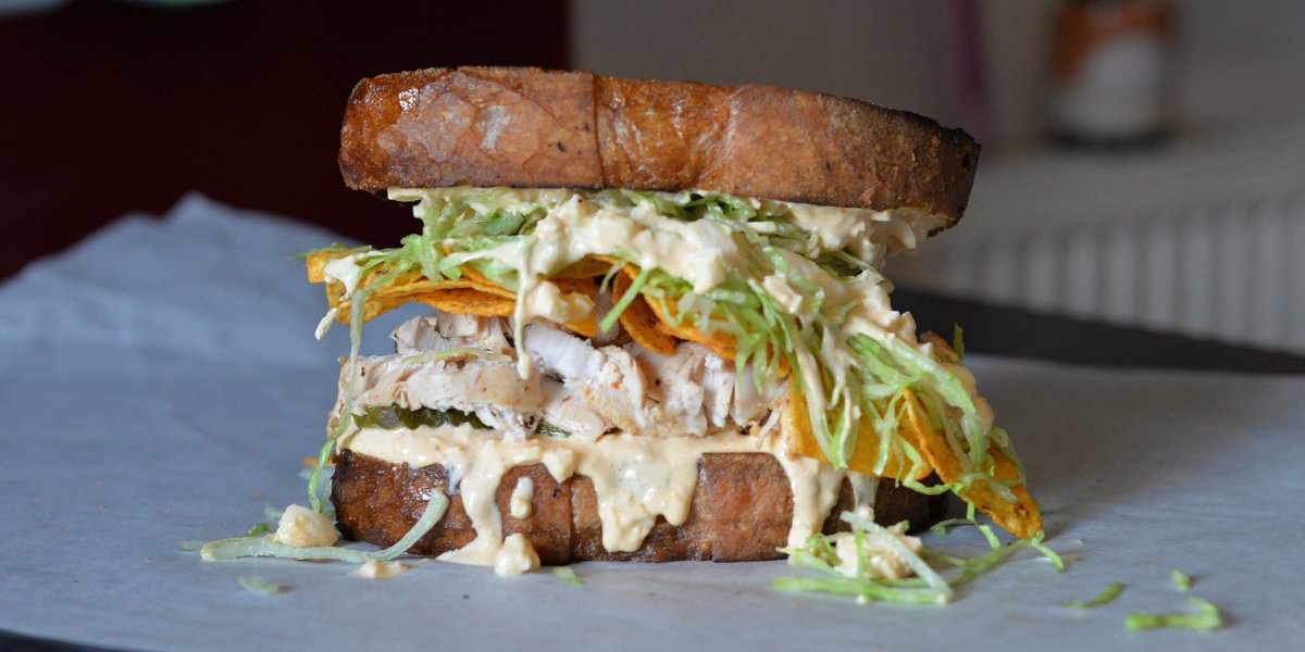 He spent a month or two at a time in different venues, from breweries to closed pizza shops, for the next 18 months, taking his stacked sandwiches around Edinburgh and building a following. Creations including buffalo fried chicken with devilled egg mayonnaise and Doritos, chicken cutlet with vodka sauce, the nose-to-tail Cubano (made with mojo pork belly, shaved tongue and slow-roast pig head) and beef broth-soaked pastrami with Monterey Jack cheese and bone marrow-infused burger sauce have, unsurprisingly, taken off. Did we mention the pie, egg and chips sandwich?