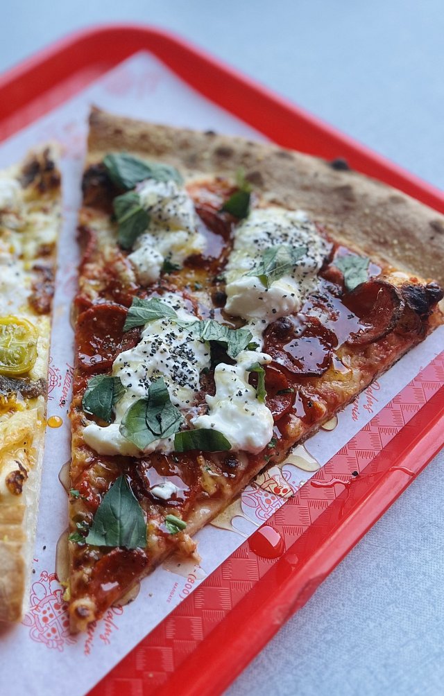 Pepperoni, Stracciatella, Hot Honey, Basil & Cracked Pepper