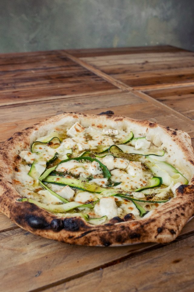 Courgette, Goat’s Cheese, Jalapeño Jam, Garlic Oil